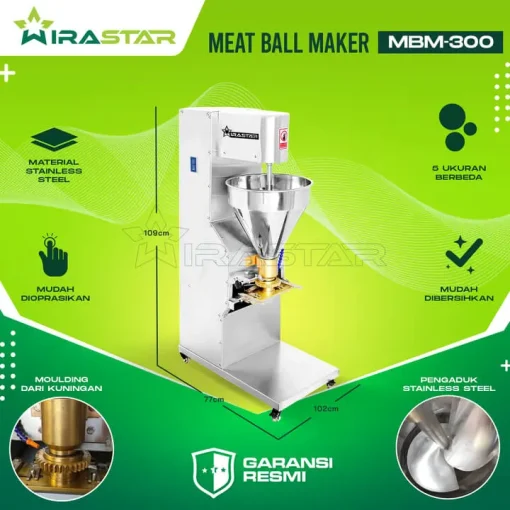 Mesin pencetak bakso MBM-300 ini dapat menghasilkan 250-300 butir dalam setiap menitnya. Anda dapat mengatur ukuran bakso sebelum dicetak. Ukuran yang akan Anda dapatkan adalah 18, 22, 26, 30, dan 32mm dengan kecepatan cetak 2800rpm. Jangan khawatir, mesin ini memiliki material stainless steel, sehingga aman bersentuhan dengan bahan adonan bakso.