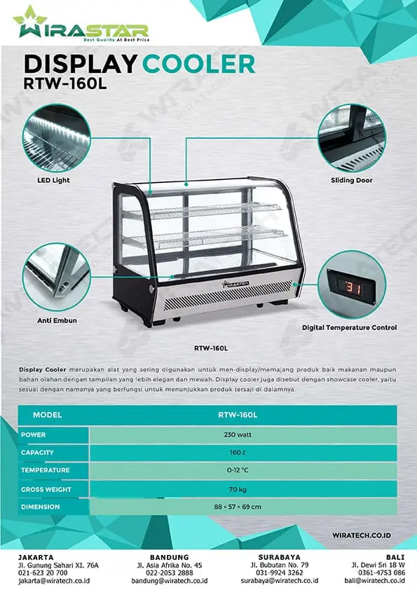 Display Cooler merupakan alat yang sering digunakan untuk men-display/memajang produk baik makanan maupun bahan olahan dengan tampilan yang lebih elegan dan mewah.